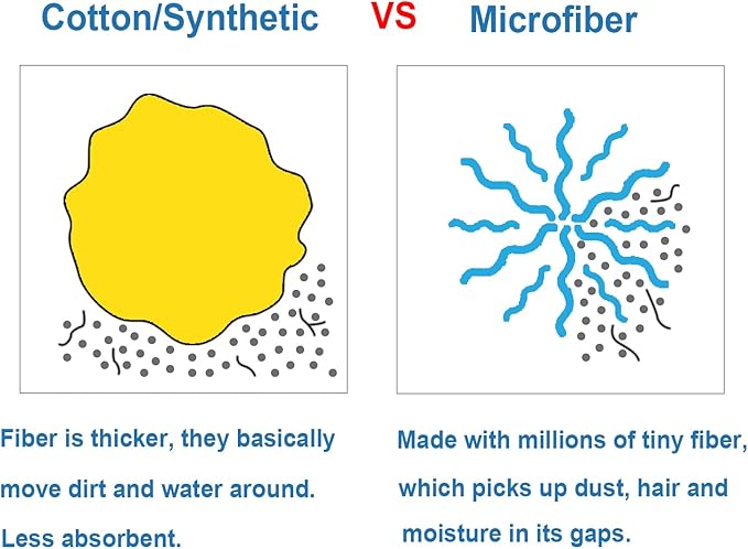 - Mop Head Material: microfiber strings. microfiber cloths contain millions of tiny fibers that have a slightly positive charge to attract grime and dirt. because the fiber is so small and so much it penetrates cracks and pickups every small particle. microfiber’s properties make it a superior material for cleaning.