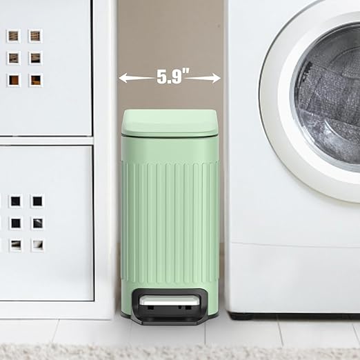 TrashAid Slim Bathroom Trash Can with Lid Soft Close, 6 Liter/1.6 Gallon Stainless Steel Small Garbage Can with Removable Inner Bucket, Step Pedal, Slim Wastebasket for Toilet, Office, Bedroom, Green