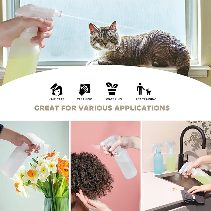 - [ Fine Spray & Strong Stream ]- Easily switch spray from a fine mist to a powerful stream with our adjustable nozzle for different purpose as a hair mister spray bottle or pet training squirt bottle,simply rotate to the off position after use