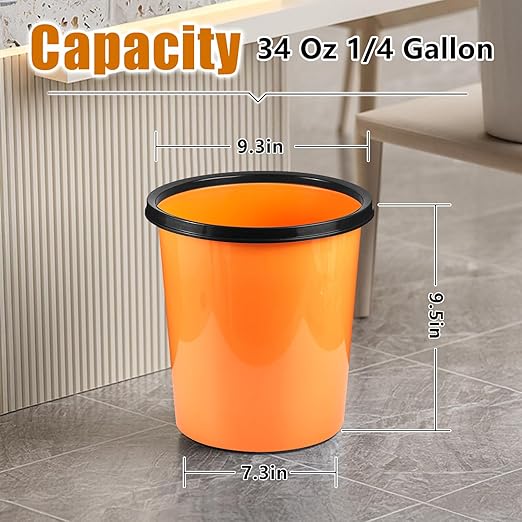 Plastic Small Trash Can Wastebasket - Garbage Can Basket for Bathrooms - Laundry Room, Kitchens, Offices, Kids Rooms, Dorms - Orange