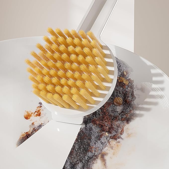 - Built-in Scraper: A durable scraper is integrated into the brush head, making it easy to remove stubborn, baked-on messes.