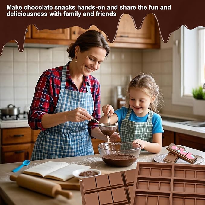 - Non-stick and Flexible: The chocolate bar is made of soft silicone, which feels comfortable, is easy to demold without residue, making the chocolates you make each time professional and beautiful, becoming a unique chocolate snack on the party table, and also allowing you to enjoy the process of easily making chocolates