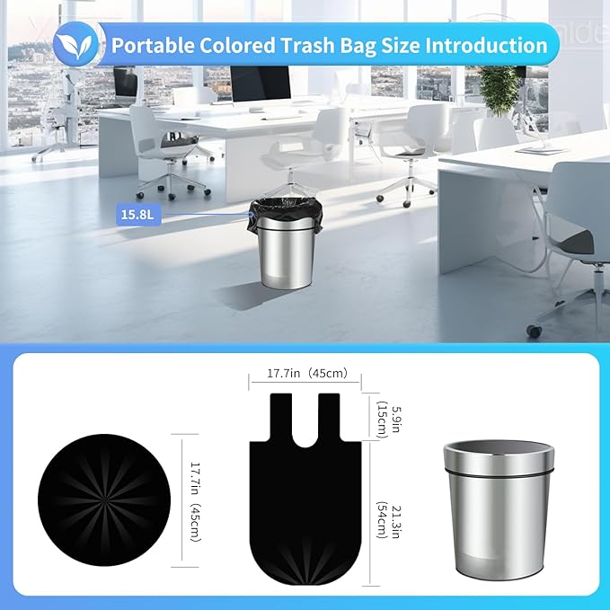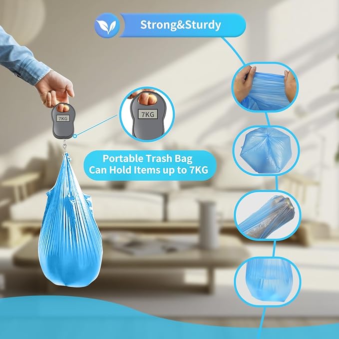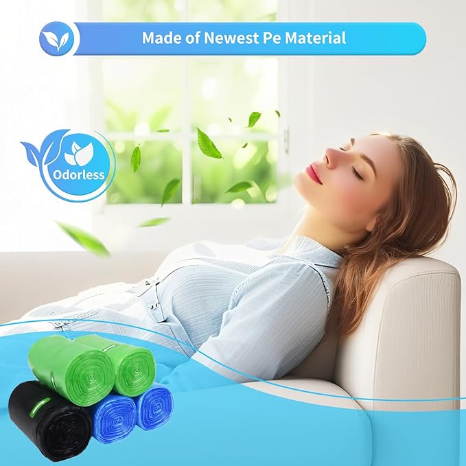 - Odorless:The Trash Bag Is Made of Brand New PE Material,And The Product Has No Odor.The Handle Design Can Be Bundled to Control The Smell of Garbage And Keep Your Home Fresh