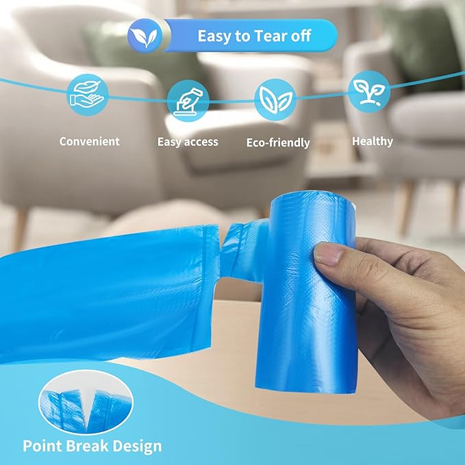 - Easy to Use:The Point-break Design Can Be Easily Torn to Separate The Bag from The Roll,And The Trash Bag Can Easily Fit Different Shapes of Trash Cans