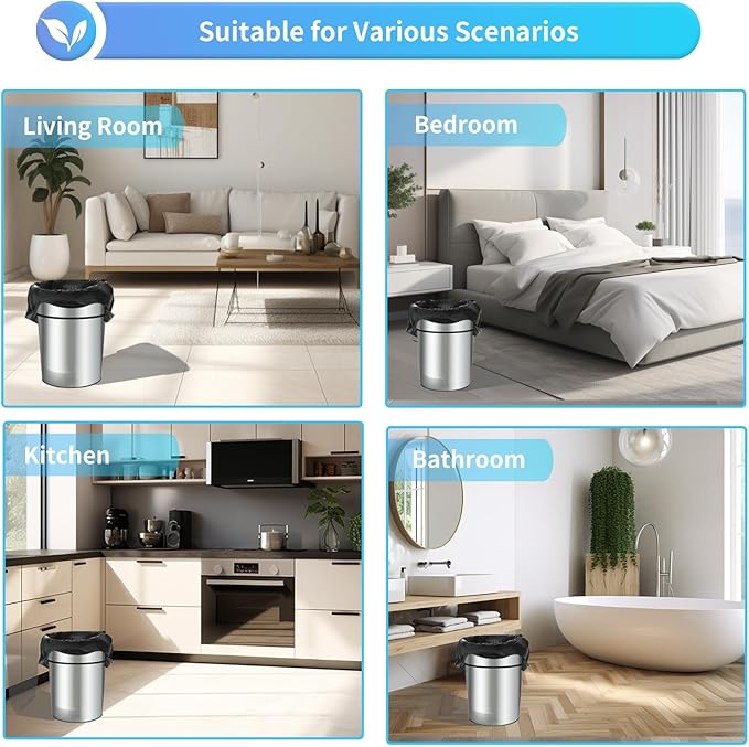 - Sturdy And Durable:The Trash Bags Are Made of High-quality HDPE Material,Which Is Tear-resistant, Puncture-resistant And Leak-proof.The Bottom Adopts An Eight-fold Bottom Design to Enhance The Load-bearing Capacity to Meet Daily Life Needs