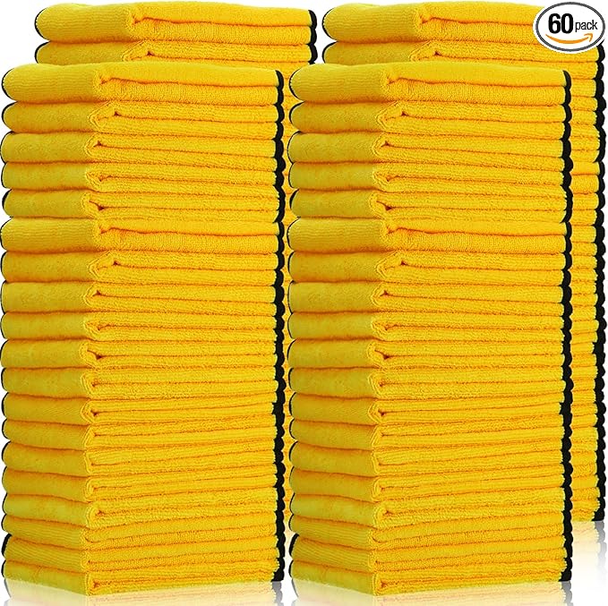 Tallew 60 Pcs Microfiber Towels 16 Inch x 16 Inch Microfiber Cloth Car Drying Towels for Cars Washing Polishing Office Windows Cleaning Household Supplies (Yellow)