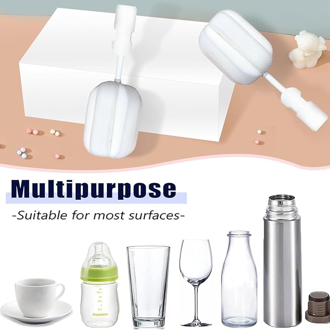 - 【Soft Sponge 】These cup brush heads are made of high-quality high-density sponge material with stronger water absorption, soft and will not scratch the cup. All cleaning brushes are made of BPA Free materials, it's so safe for babies to use. Suitable for plastic, glass, stainless steel and ceramic cups.