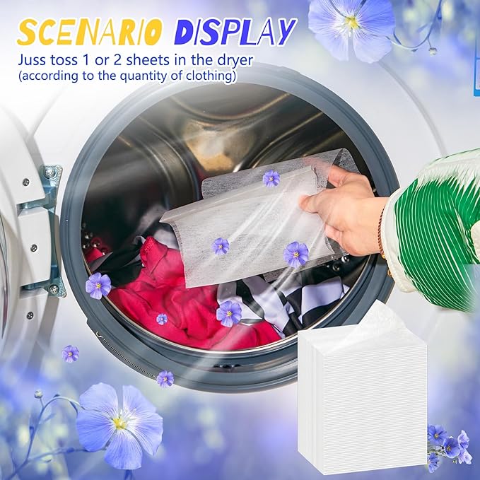 - Warm Note on Usage: for better results, we recommend using the appropriate number of dryer sheets scented depending on the load of clothes and the level of fragrance desired, 2 sheets can be applied for a large amount of clothing; Please recycle the paper after use
