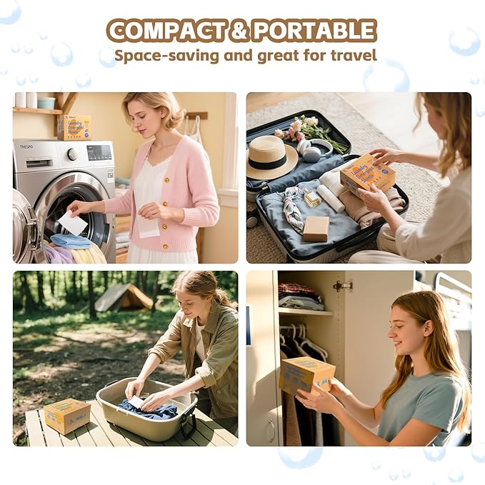 - MESS-FREE & PRECISE DOSING - Say goodbye to spills and over-pouring! These washer sheets detergent are pre-measured for perfect loads every time. One sheet = two load, eliminating messy liquid measuring and saving you time on laundry day.