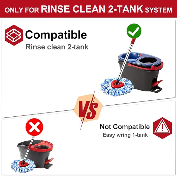 - 【For 2-Tank System】Includes 6 microfiber mop refills, 1 scrub brush, and 1 mop base. The mop heads replacements set combo is only compatible with 2-Tank system, NOT compatible with 1-Tanks EasyWring system.