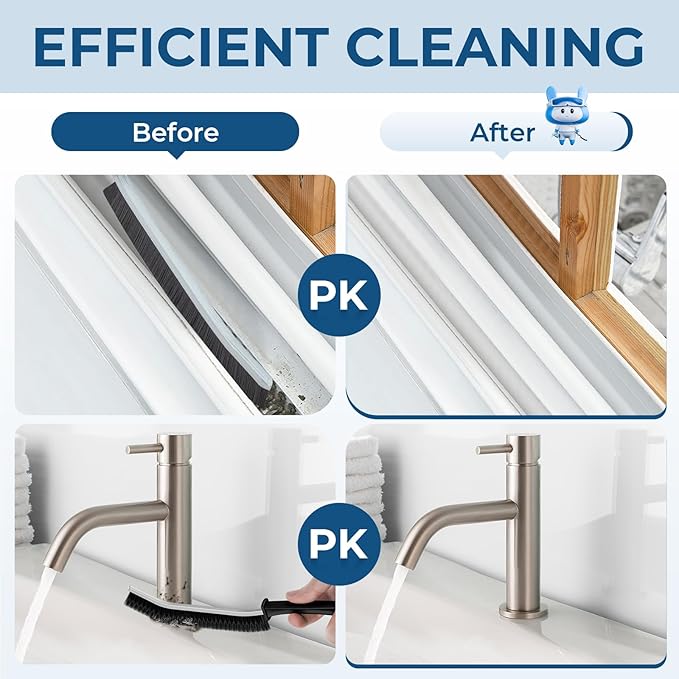 - Multi-purpose Brush: Our cleaning brush is suitable for cleaning various surfaces such as sinks, window tracks, blinds, door tracks, faucets, cars, stoves, grout lines, basins, floors, keyboards, bathtubs, vents, drains, swimming pools, vehicles, furniture, boats, countertops, microwaves, coffee machines, shower door frames, fans, shoes, sneakers, ovens, washing machines, toilet tank floors, the seam between the toilet bottom and toilet lid, the gaps in carved furniture, outdoor brick seams, etc.