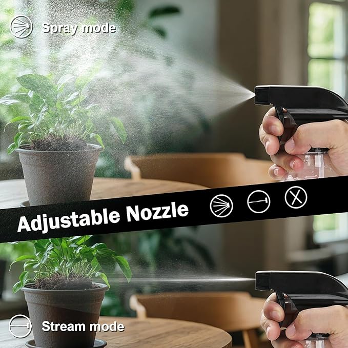 - HEAVY DUTY SPRAY BOTTLES: Our plastic sprayers are crafted from high-quality material, ensuring for daily use with cleaning solutions, hair products, or plant care. These empty spray bottles are lightweight and shatterproof, ideal for indoor/outdoor use.