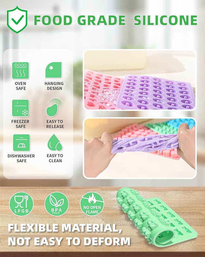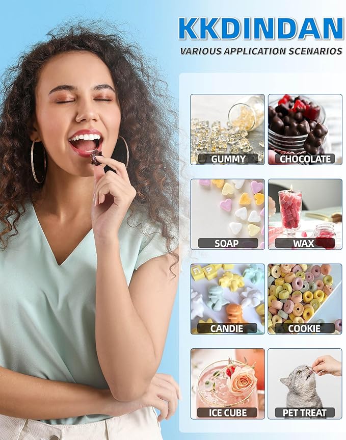 - PREMIUM FOOD-GRADE SILICONE MATERIAL: Crafted from carefully selected food-grade platinum silicone, BPA free, no odor, and certified by LFGB, the silicone molds for food ensure safety and quality. They withstand temperatures from -22°F to 446°F that are suitable for microwave, oven, refrigerator. It can be used to make gummies, chocolates, ice cubes, jellies, hard candies, pet treats, and even wax melts.