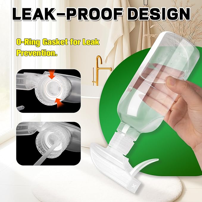- Leak-Proof Design: Built with leak-proof gaskets and precision threading, our trigger sprayer heads create a tight, secure seal that helps prevent drips, leaks, and unnecessary waste during use. When not in use, twist the nozzle to the off mode to avoid accidental spraying and ensure clean, dry storage