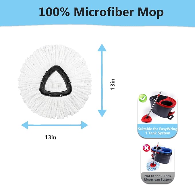 - 【Perfect Compatibility】:The package includes 6 pack mop replacement heads,1 mop base set,Which compatible with Oceda RinseClean 1-Tank only.(Note:Not fit EasyWring 2 Tank System system)