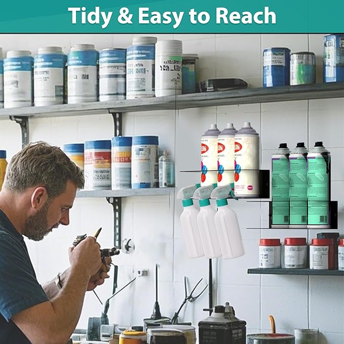 - STAY ORGANIZED: The package includes 2 spray bottle holders, holding up to 8 cans in total, keeping them visible, accessible, and neatly arranged—helping maintain a tidy space, reduce clutter, and boost work efficiency