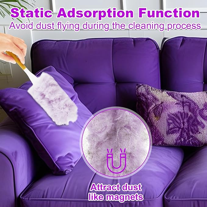 50 Count 360 Heavy Duty Duster Refills Bulk Compatible with Swiffer, Dusting Refills with 1 Handle, Multi Surface Disposable Dusters Refill for Cleaning (Purple)