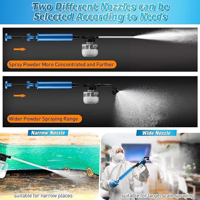 - Air gun spray gun design: Compared with other diatomite powder dust collectors, our air gun dust collector sprayer has undergone product upgrades. The diatomite container is designed to be separated from the air spray barrel. The air turbulence makes the powder evenly, easily and efficiently distributed, forming a relatively stable powder flow at different pointing angles, reducing the possibility of clogging, which can save your time and energy