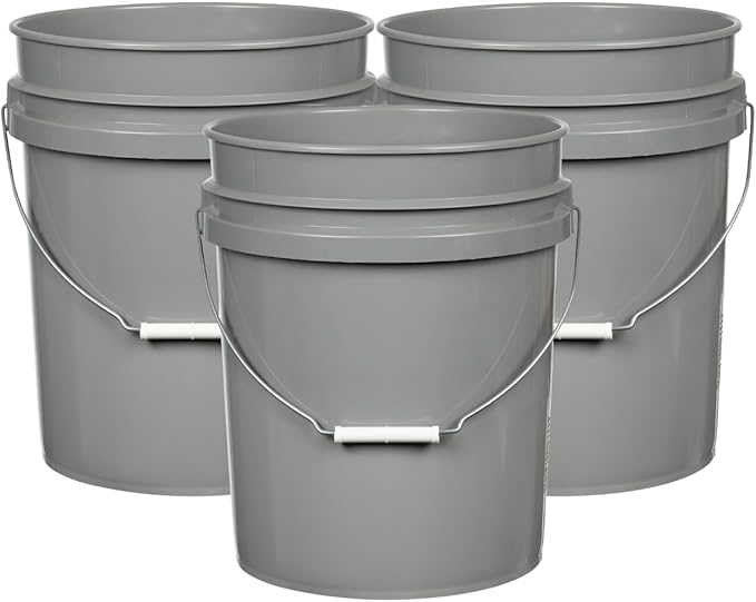 House Naturals 5 Gallon Premium HPDE Plastic Bucket - Made in USA Food Grade Storage Container, BPA Free All Purpose Pail (3, Gray)