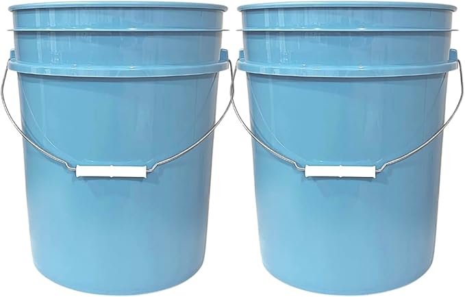 House Naturals 5 Gallon Premium HPDE Plastic Bucket - Made in USA Food Grade Storage Container, BPA Free All Purpose Pail (2, Light Blue)