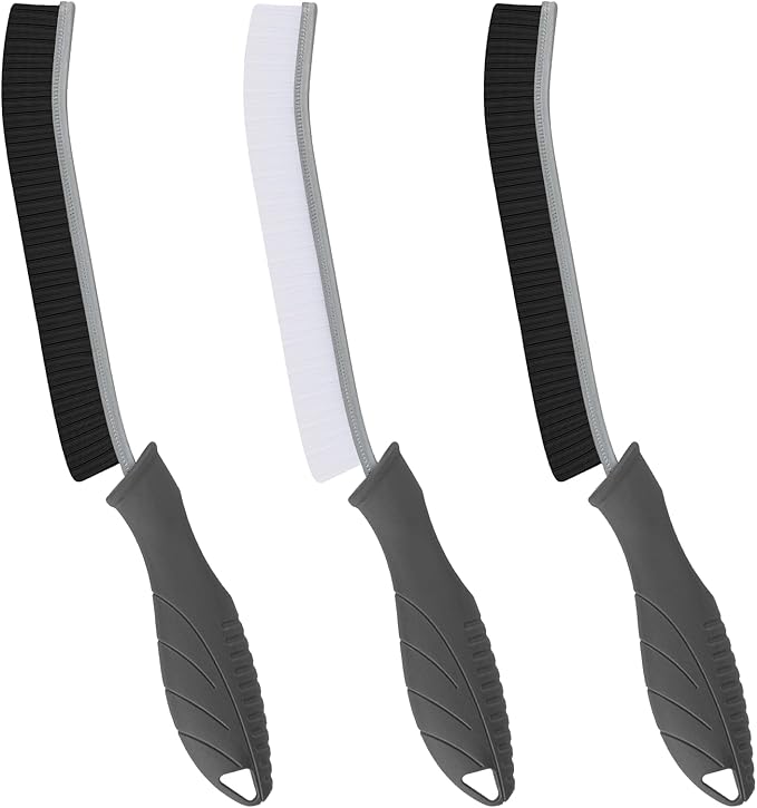 Hard Bristle Crevice Cleaning Brush - Cleaning Supplies - Grout Cleaning Brushes for Household Use - Crevice Cleaning Tool for Bathroom, Home and Kitchen (3, Grey)