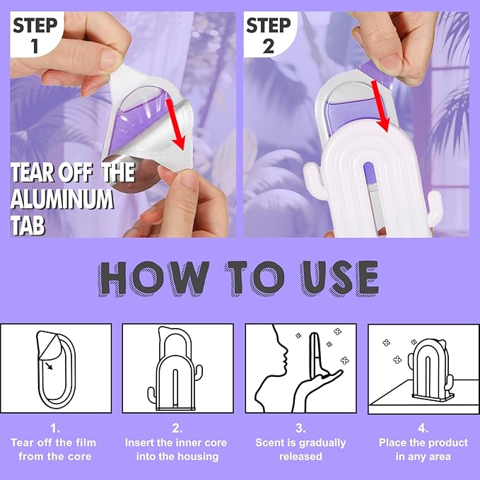 Air Freshener for Home, 2 Pack, 2 Refill, Lavender Scent, Odor Eliminator, Up to 120 Days, Cactus-shaped Freshener for Closet Bathroom, Cute Home Decor, White
