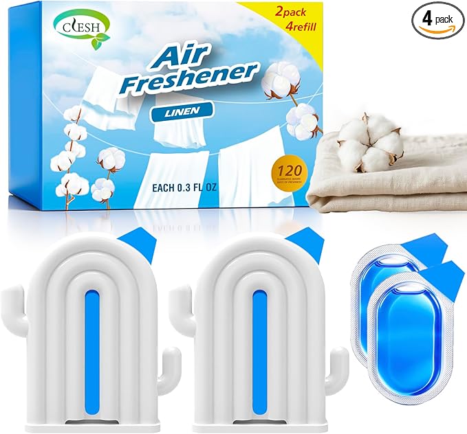 Air Freshener for Home, 2 Pack, 2 Refill, Linen Scent, Odor Eliminator, Up to 120 Days, Cactus-shaped Freshener for Closet Bathroom, Cute Home Decor, White