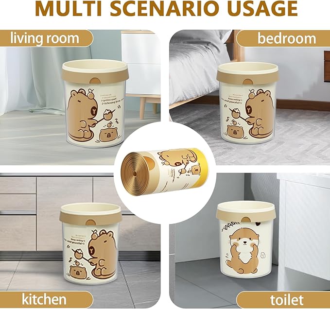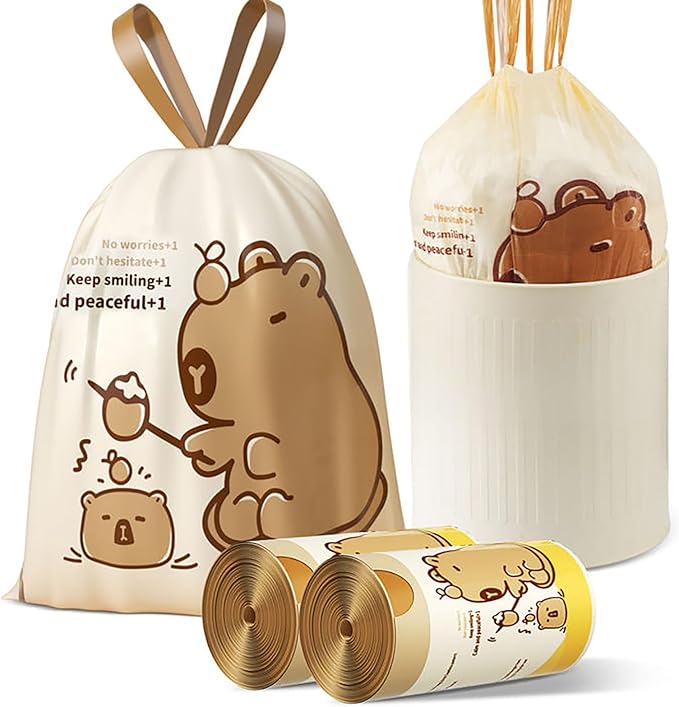 - đŠ„ăAdorable Capybara Print for Daily JoyăTurn your trash can into a cheerful accent! These 8 gallon trash bags feature charming capybara patterns âperfect for kitchens, offices, or playrooms. Unlike dull medium garbage bags , our design adds a smile to your routine.