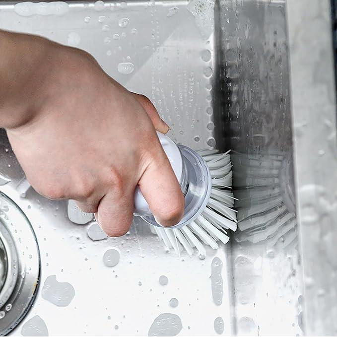 Dish Brush with Soap Dispenser for Dishes Pot Pan Kitchen Sink Scrubbing, White 3 Pack