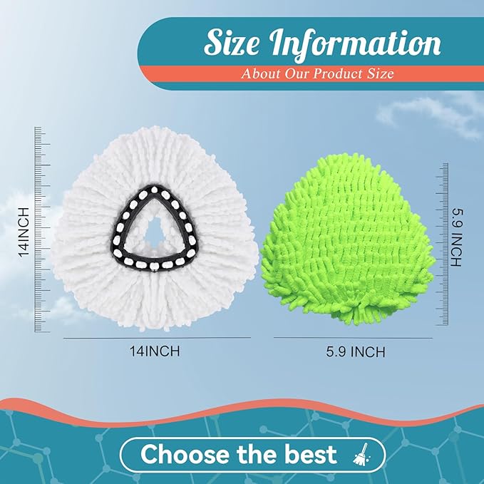 - 360° Rotating Design for Deep Cleaning:The spin mop head glides effortlessly into corners, edges, and under furniture, ensuring complete floor coverage with minimal effort.The mop head is not compatible with the 2-tank system,only fits for 1-tank mop system.