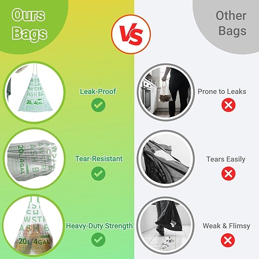 - Perfect Size for Small Bins – Clean, Snug Fit:Each bag measures 19.7" x 21.6", designed to fit 4–5.3 gallon trash cans without slipping. A tailored fit ensures neat disposal for light daily waste in apartments, dorms, or bathrooms.