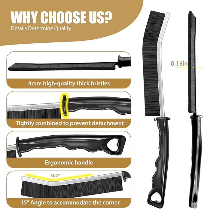 - 【Widely Applicable】The hard bristled crevice brush is suitable for cleaning small spaces such as faucets, sinks, stoves, toilet seat hinges, bathroom bathtubs, shower racks, sinks, window crevices, sliding door tracks, tile countertop grouting lines, fans, air conditioning vents, refrigerator gaskets, washing machines, furniture, wardrobes, bird feeders, cars, etc. Multiple sets can provide different brushes for different rooms such as kitchens, bathrooms, and living rooms to avoid mixing.
