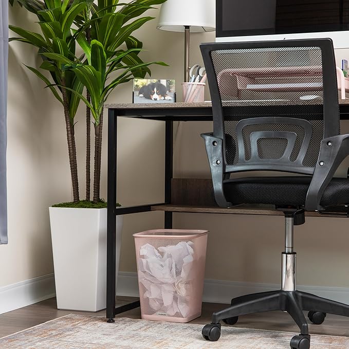 Mind Reader Mesh Trash Can, Square Wastebasket for Office or Home, 5 Gallon Capacity, Metal Mesh, Set of 2, Pink