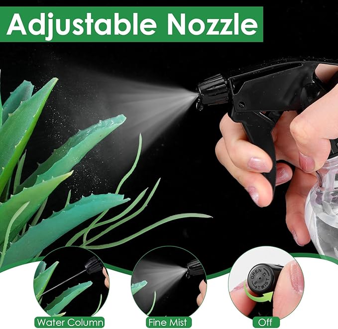 - 【Adjustable Nozzle】- These refillable spray bottles feature an adjustable nozzle, allowing you to control the spray pattern, from a fine mist to a water column, as per your needs.