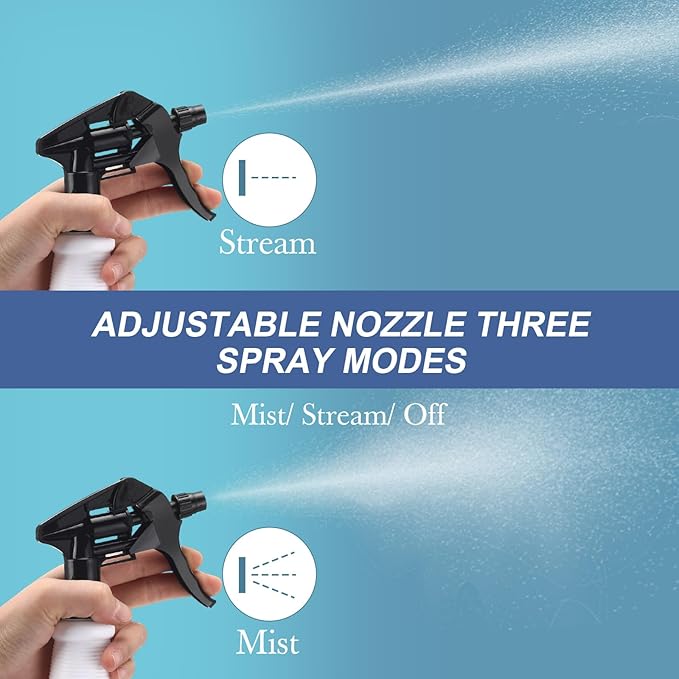 - Adjustable Nozzle Heavy Duty Spray Bottles: these water spray bottles are designed with an adjustable nozzle, there are 3 different modes: close, mist, and stream; Easy to rotate and use, the straw goes straight to the bottom of the bottle, avoiding wasting and spraying out; Providing convenience to your life