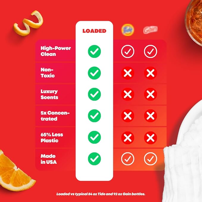 - 5X POWER - Loaded's ultra-concentrated formula allows for 50 loads of laundry and 1/5 of the plastic used with typical laundry detergent jugs.