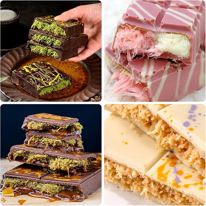 - MULTI-PURPOSE: Perfect for DIY enthusiasts and home chefs! In addition to making pistachio chocolate bars, it can also be used as a wax melting mold, soap mold, and ice cube mold. You can also make protein bars, candy bars, cheesecake, or nut chocolates.You can enjoy a variety of sweet treats in one baking, and share the joy of homemade desserts with your friends