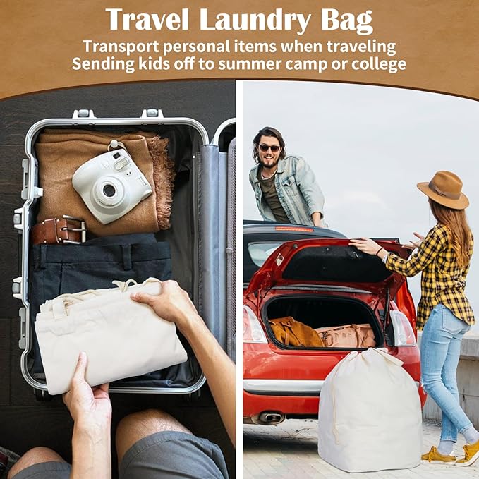 - MULTI-USE CANVAS STORAGE BAG: Convenient as a dirty clothes bag, laundry basket liner, laundry hamper bag, hamper liner, dustproof storage bag, sleeping bag storage sack, college dorm laundry bag, or laundry bag for hotels and dry cleaning stores