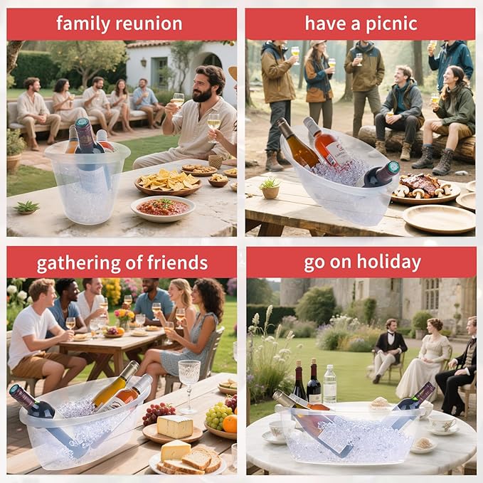 - DUAL VALUE PACK: Set includes 2 oval-shaped ice bucket for parties, each featuring built in comfortable handles for easy carrying when filled with wine and ice, offering double the drink-cooling capacity for larger events, great for keeping your beverages perfectly chilled.