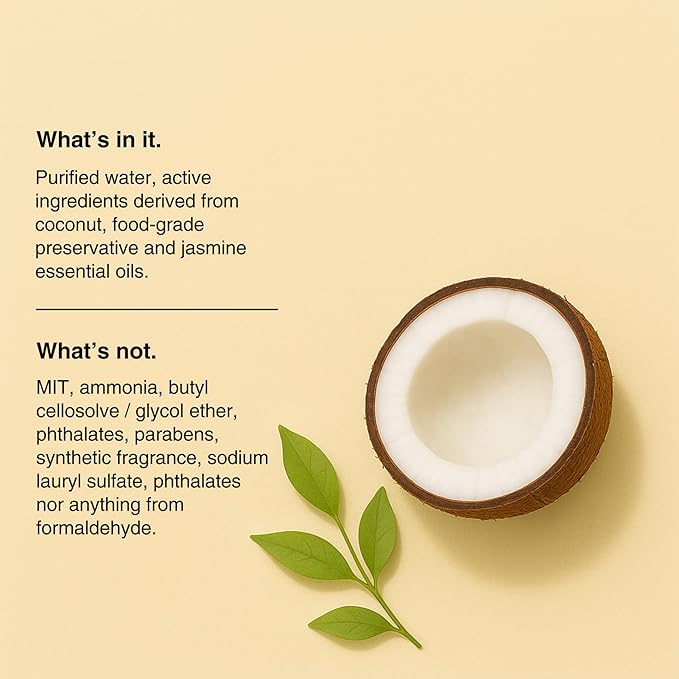 - Powerful Plant-Based Cleaner – Our concentrated multi purpose cleaner is tough on grease, dirt, and grime thanks to coconut-derived cleaning agents and jasmine essential oils.