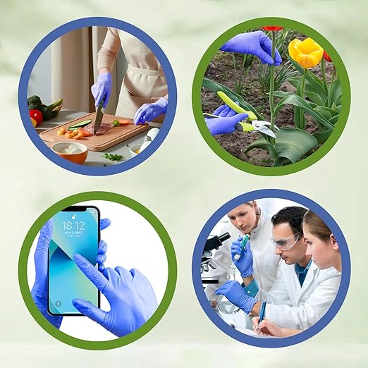 - UNIVERSAL FIT & SKIN-SAFE:Powder-free, latex-free, and chemical-free—gentle on sensitive skin. Available in XS-XL for a comfortable, second-skin fit. Violet blue color for easy identification.