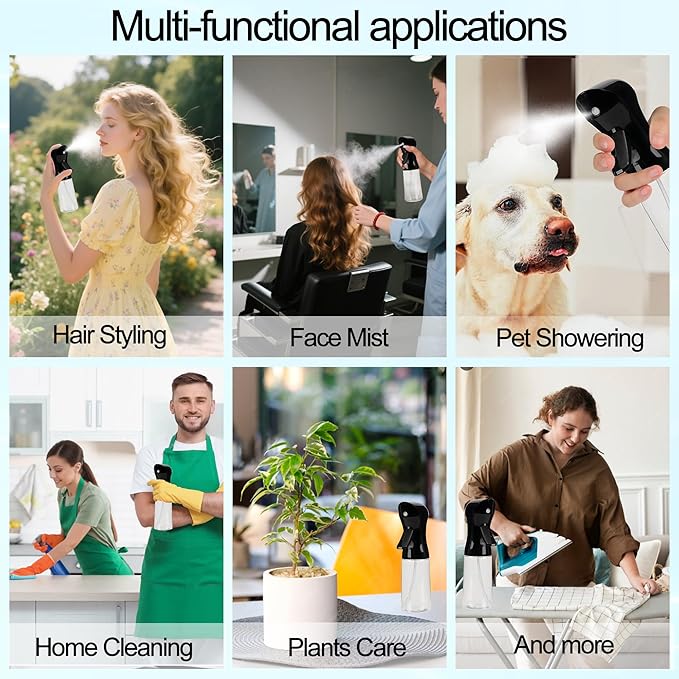 - Ultimate Multi-Purpose Solution: One spray bottle for countless tasks! Excellently serves as a hair water spray bottle, salon styling tool (barber accessories), plant misters for inside, surface cleaner, pet groomer/room spray diffuser, and more. Replace multiple spray bottles with this versatile water mister