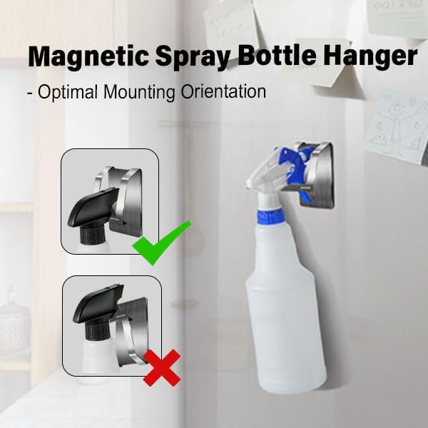 - Ultra-Strong Magnetic Hold - The magnetic spray bottle hanger features powerful magnetic backing that instantly attaches to any ferrous metal surface (fridge, microwave, grill) and securely holds up to 4.4 lbs - no slipping or sliding.
