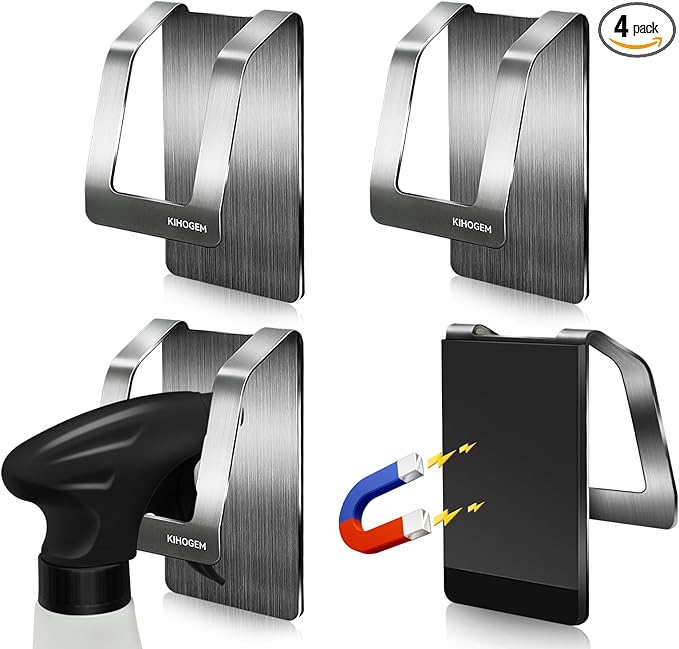 KIHOGEM Magnetic Spray Bottle Hanger, Stainless Steel Spray Bottle Holder with Strong Magnetic Backing for Refrigerator Grill RV (4pcs)
