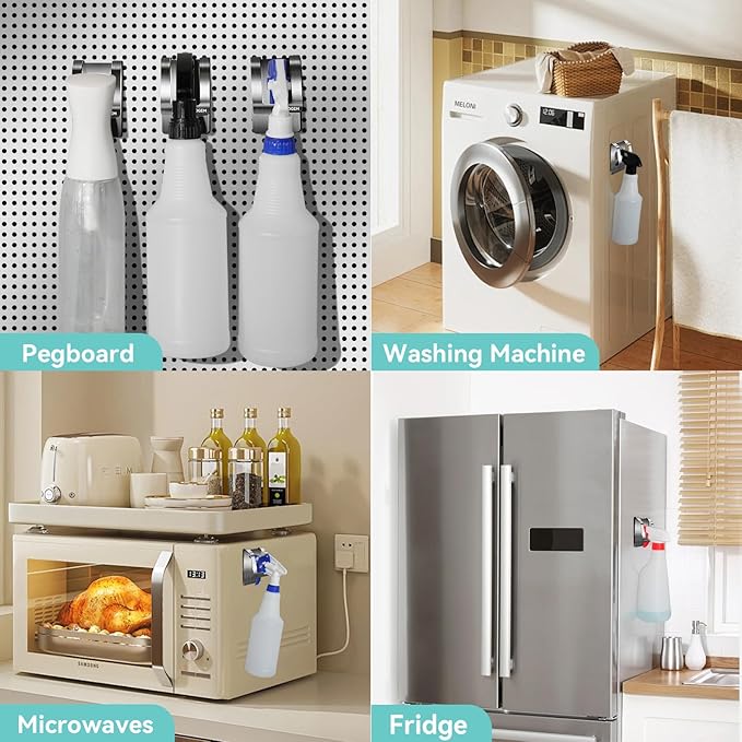 - Versatile & Scratch-Free Placement - Works perfectly on fridges, microwaves, metal cabinets and BBQ grills. Includes protective non-slip pads to prevent surface scratches - making these the most practical magnetic hooks for spray bottles.