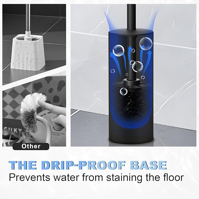 - 【Upgraded 304 Stainless Steel Design: Stable & Elegant】Say goodbye to flimsy plastic toilet brushes that tip over easily! Our upgraded toilet brush is crafted from premium 304 stainless steel, which adds weight for stable standing—no more wobbly holders. The sleek, modern look elevates your bathroom decor, and the hidden brush head design eliminates awkwardness when guests use your bathroom. It keeps your space tidy while boosting visual appeal.
