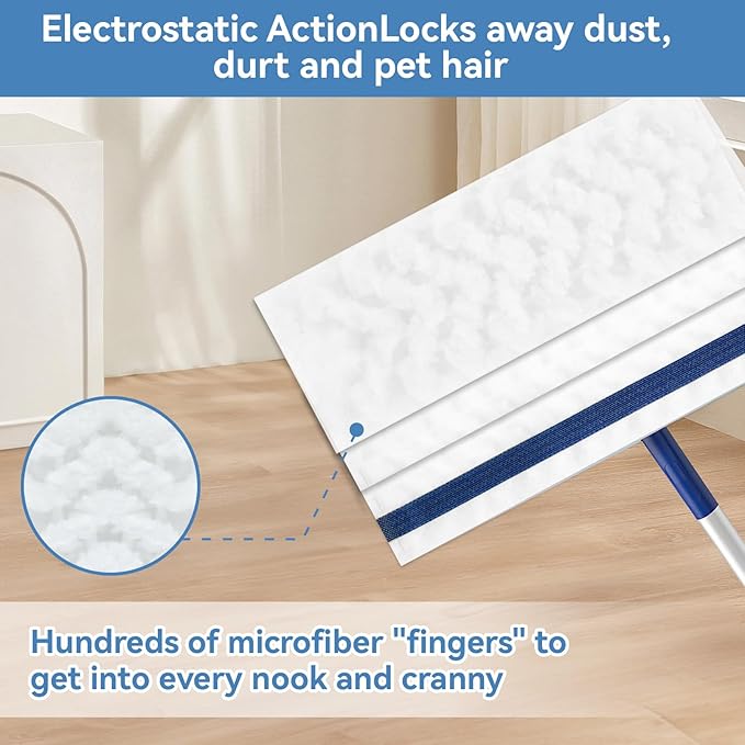 - 【Fluffy Microfiber Mop Pad】Heavy-duty construction with hundreds of microfiber "fingers" to get into every cranny. Our dust mop pad effective at picking up dust, pet hair, and dirt, particularly on hardwood and laminate floors.