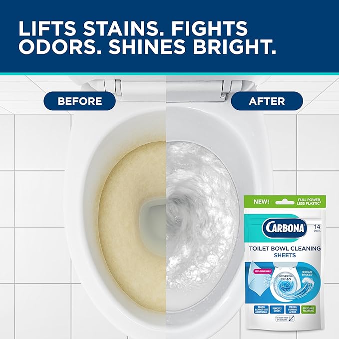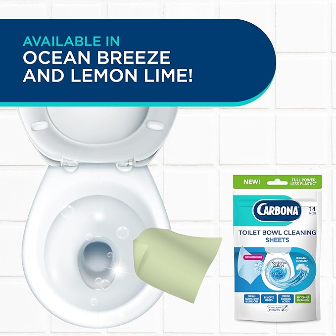 Carbona Toilet Bowl Sheets – Ocean Breeze Scent – Powerful Toilet Bowl Cleaner – 14 Sheets – Less Plastic Waste