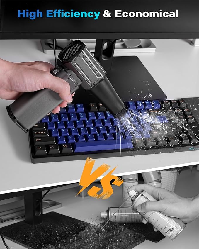 - Multi-Use Versatility: Equipped with 3 nozzles and 1 brush, this compressed air duster is perfect for cleaning PCs, keyboards, home and outdoor use. As well as efficiently blowing away leaves water spots on car. The electric air duster is also ideal for managing campfires when camping