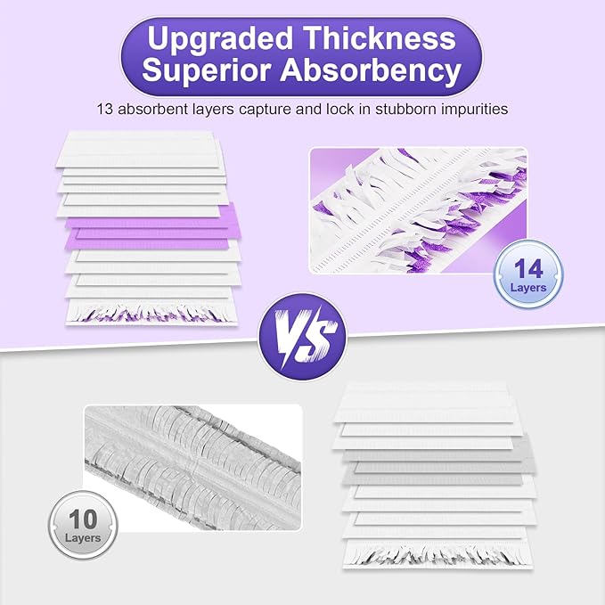 - ✅【14 Layers Design, Wet and Dry】The disposable power mop pads feature an advanced 14-layer absorbent design, these mop pads have hundreds of microfibers that effectively trap and lock in hard-to-clean debris. For dry mopping, they easily pick up dirt, dust or pet hair; for wet mopping, they effectively absorb grease, dirty water and other wet debris
